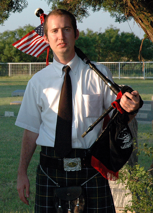 Luke Senter is our itinerant member. He currently lives in North Richland Hills but comes to Abilene whenever finances, parole and restraining orders permit. Luke has been playing the pipes since August of 2002. He has been with the Abilene Pipers since August of 2003. A couple of Punk bands such as The Dropkick Murphys and The Real McKenzies along with his Scottish heritage inspired him to play the pipes. Luke has played at many events and functions throughout West Central Texas and is currently involved with the North Texas Caledonian Pipes and Drums. Their Webpage isn't nearly as good as ours but their playing is impeccable.